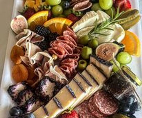 A combination of Chicago flavors on an extra-large wood tray to include sliced Genoa Salami, sliced spicy Sopressata Salumi, Prosciutto, mini Caprese with olive oil & Balsamic vinegar, slices of aged Gouda, slices of young Manchego, slices of White Cheddar, crumbled Parmigiano Reggiano, imported garlic stuffed olives, kalamata olives, Giardiniera, pepperoncini’s, sweet peppers, sport peppers, fresh fruit, Croccantini 'Sea Salted' Artisan crackers, French Baguette – sliced, and Chocolate Almond Biscotti’s (3) for dessert - paired with your favorite Vin Santo - all served on a checkered food wrap with carb and dessert side boxes. Appetizer tray serves 10-12 people.